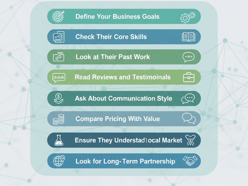 Check their past work, reviews, online presence, and ask for a trial project before committing to a long-term contract.